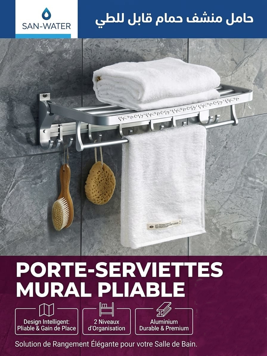 حامل مناشف ألمنيوم فاخر قابل للطي (2 مستويات) – Porte serviette en aluminium