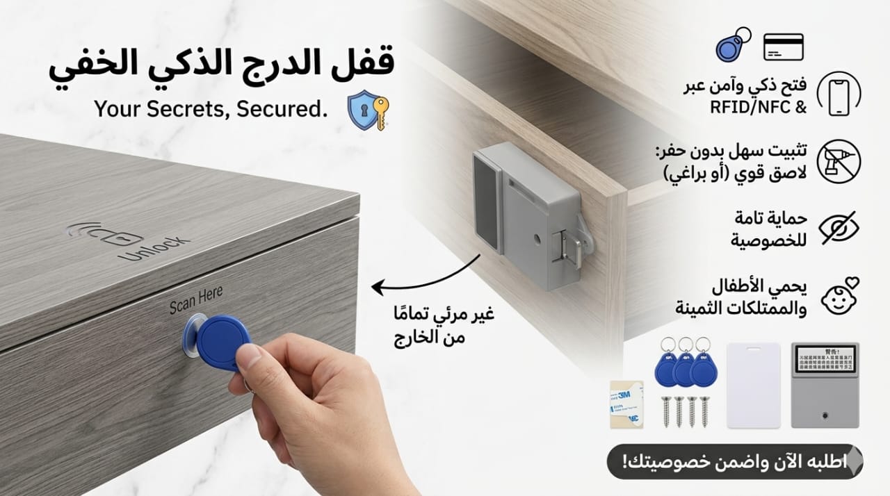 قفل الخزائن والأدراج الذكي المخفي (RFID) – الحل السحري لحماية خصوصيتك وسلامة أطفالك دون تشويه أثاثك