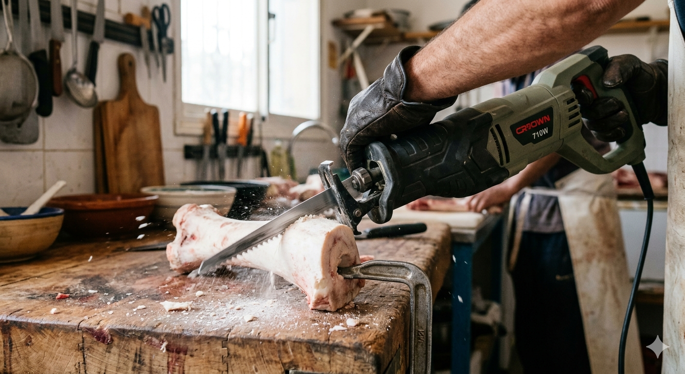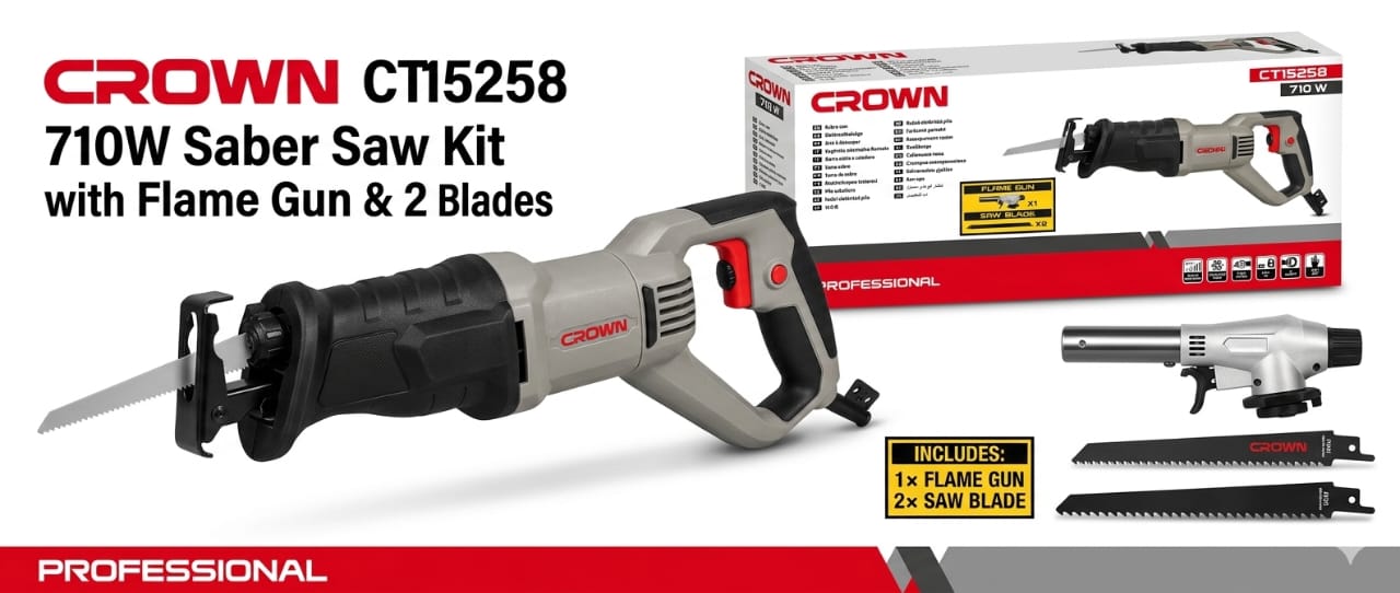 منشار كراون (Crown) الترددي 710 واط – “الجوكر” متعدد الاستخدامات لتقطيع اللحوم، الخشب، والمعدن بكل احترافية.