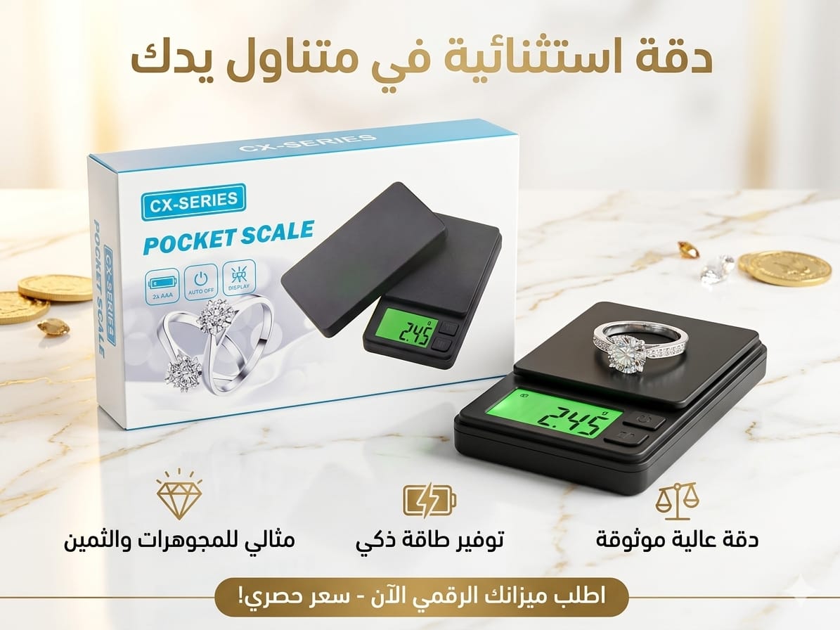 1. دقة “الميكرو” التي لا تظلم أحداً: بفضل حساسيته العالية التي تبدأ من 0.01 غرام، لن تضيع منك “تفتوفة” واحدة. هذه الدقة المتناهية تجعله الخيار الأول للتعامل مع الذهب، الأحجار الكريمة، وحتى الزعفران الحر والمكونات الحساسة.