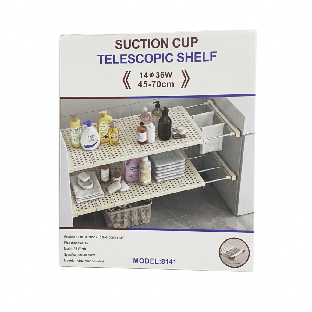 الحل الأمثل لاستغلال المساحات الضيقة في منزلك! رف قابل للتعديل والتمديد يناسب جميع أنواع الخزائن (مطبخ، حمام، أو ملابس) بدون الحاجة لثقب الجدران. متين، سهل التركيب ويوفر لك تنظيماً مثالياً.